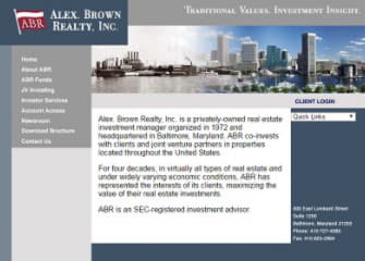 Alex. Brown Realty, Inc. (ABR) is a privately owned real estate investment manager organized in 1972 and headquartered in Baltimore, Maryland. ABR co-invests with joint venture partners in a broad spectrum of property types located throughout the United States. www.abrealty.com