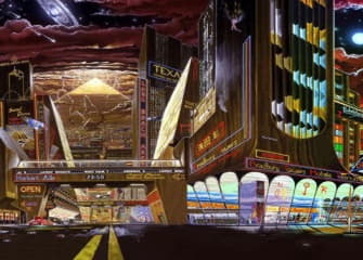 Cropped from Iron Maiden’s Somewhere in Time. Try to spot the Hammerjacks shout out.