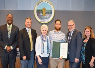Jon Weinstein, Calvin Ball, Jen Terrasa, Mary Kay Sigaty, and Greg Fox of the Howard County Council and Co-Founder of greeNEWit Jason Jannati