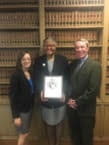 In just over a year, the three members of Santoni, Vocci & Ortega, LLC (SVO) have accepted 34 consumer pro bono cases from MVLS. SVO attorneys help MVLS staff unravel complicated legal issues while training and mentoring new attorneys. Jane Santoni, with more than eight years of volunteering with MVLS, has assisted 28 clients with consumer and foreclosure matters. Photo credit: Maryland State Bar Association (MSBA); Photo: from left to right: The Honorable Chief Judge Mary Ellen Barbera; Jane Santoni, Matthew Vocci, and Chelsea Ortega, partners, Santoni, Vocci & Ortega, LLC; and Sharon Goldsmith, executive director, Pro Bono Resource Center of Maryland.