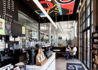 While the former factory that was to become our new office offered ample space for employee-requested amenities (like free parking, lots of collaboration spaces, a bike rack and a beer fridge), it lacked one crucial element—good local coffee; a space where creative ideas are sketched on napkins around a hot beverage and shared conversations.