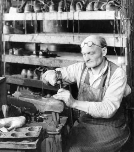 Shoe Repair (1930) - Shoe repair at Goodwill Industries.