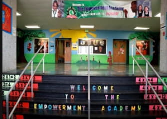 The 92,000-square-foot building is the home of the Empowerment Academy founded by Rev. Jamal H. Bryant, the former charismatic pastor of the Empowerment Temple AME Church, who had promised to elevate education in a low-income neighborhood.