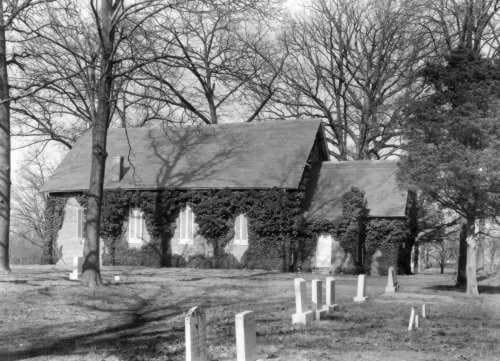 Old Wye Church (1931) - Old Wye Church is a historic Episcopal church at Wye Mills, Talbot County, Maryland. It is a one-story, gable-roofed, rectangular brick structure originally constructed in 1717-1721. It was extensively renovated in 1854 and restored to its 18th century appearance in 1947-1949. It embodies the distinctive characteristics of Georgian Anglican architecture in its brick construction, semicircular-arched window openings, shouldered buttresses, rectangular plan, and simple massing.