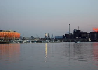 The 70-year-old Domino Sugars sign on Baltimore's Inner Harbor will be coming down to be replaced by a an LED version. MarylandReporter.com photo. https://www.baltimoresun.com/business/bs-pr-bz-domino-sign-replacement-20210203-4cmuf2u3ffa2xbw7535vca6qd4-s