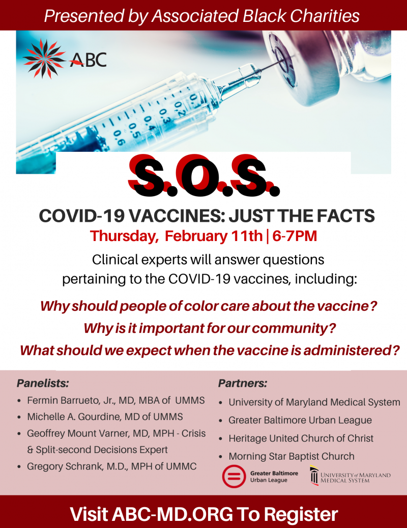 In the ninth installment series of their S.O.S. Webinar Series, Associated Black Charities (ABC) is offering COVID-19 Vaccines: Just The Facts. The February 11th virtual meeting will be held from 6-7PM. Click here for free registration.