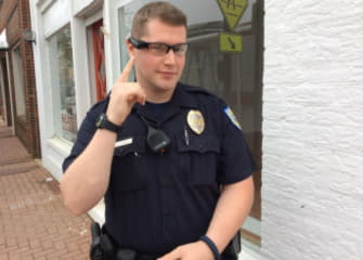 Police body camera shown on Main Street of Laurel. Photo by City of Laurel.