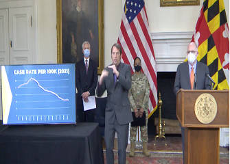 Hogan implored the federal government to send more “damn vaccines” to Maryland. Hogan noted that about 2 million Marylanders are currently eligible for vaccination but that the state only receives about 11,000 does each day. Hogan also noted that just because someone is eligible for vaccination that does not mean that a vaccine is always available.
