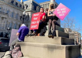 Eight African-American city leaders, who summoned the media to the front of City Hall to express concerns about Baltimore’s top corruption investigator, called off a news conference after being drowned out by strippers protesting the shutdown of adult entertainment venues.