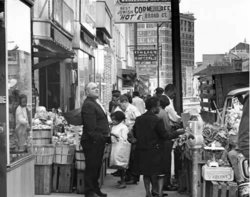 Lombard Street: Jew Town (1969) - Offerings are stacked along the sidewalk, giving the atmosphere of a bazaar.