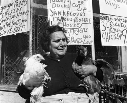 Lombard Street (1969) - Chickens being held at a 'kill while you wait' stall in Jew Town, on Lombard Street.