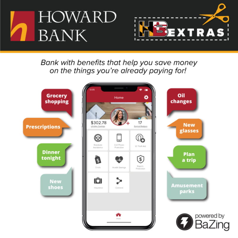 Extra+ and Extra checking introduce the HBExtras mobile app, powered by BaZing, to provide access to personal protection and money-saving benefits. HBExtras include personal identity theft reimbursement and aid in the event of identity theft, cell phone protection insurance, roadside assistance, travel accidental death insurance, a health savings card for preferred pricing on prescriptions, buyer’s protection and extended warranty when you make purchases on your Howard Bank debit card, and access to BaZing’s savings network with over 400,000 national and local discounts. Extra+ accounts get all of these perks and earn interest as well.